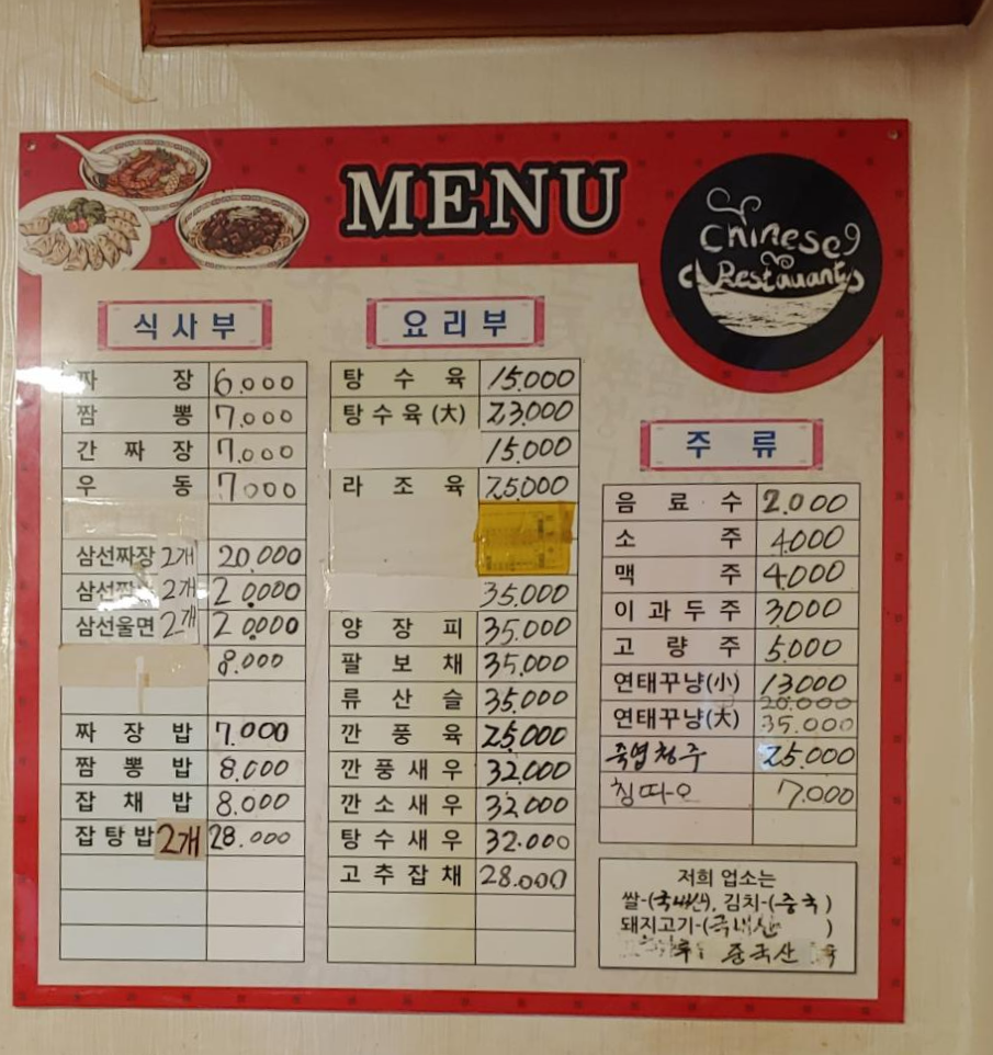 가격대는 여타 중식당과 비슷한 수준이다. 최근 중식에도 다양한 재료를 사용하는 곳이 늘어 짬뽕 한 그릇에 만원을 훌쩍 넘기는 편이 많은데 그에 비하면 저렴한 편이라고 해야 하나.