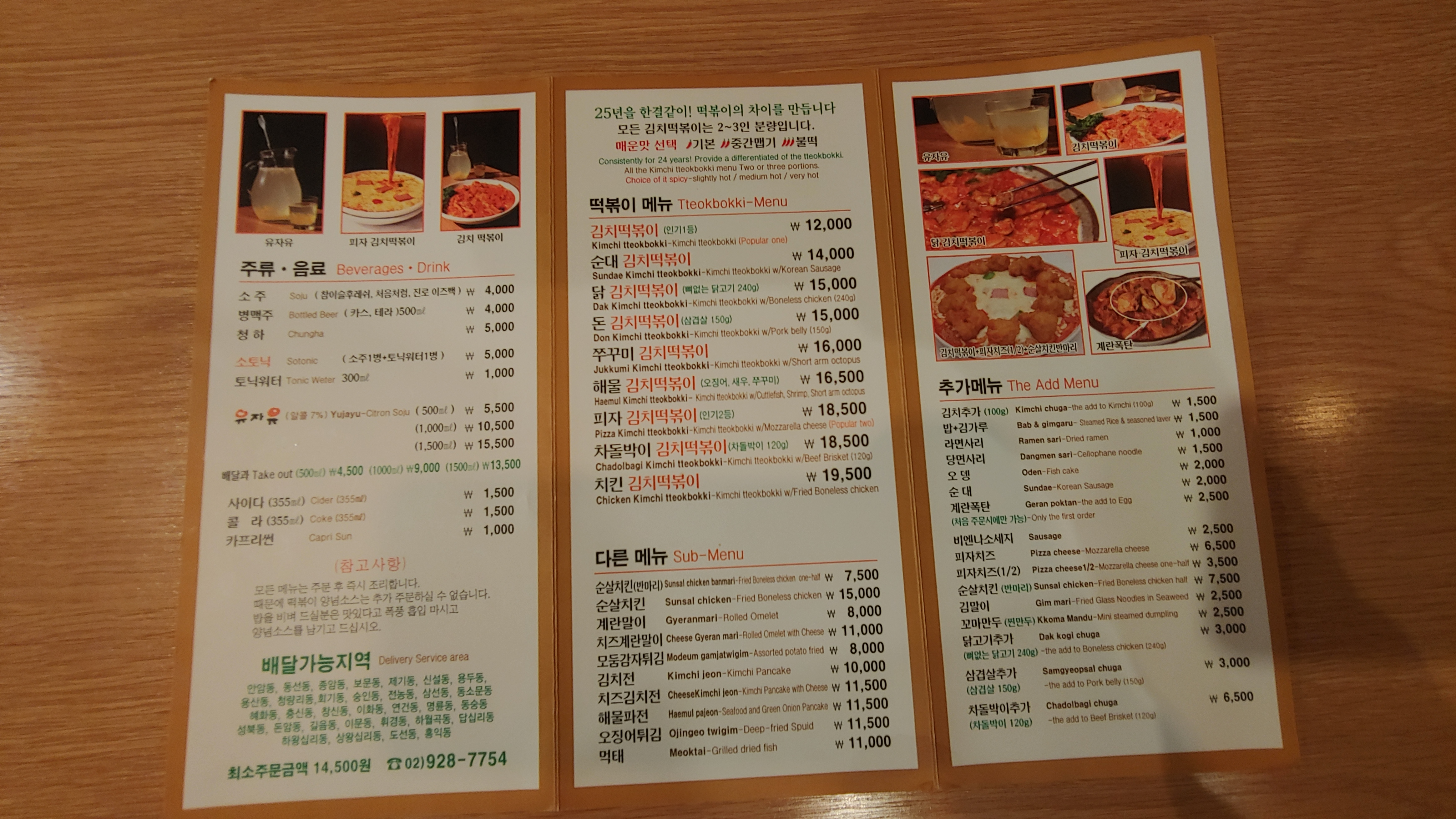 김치떡볶이가 주력 메뉴이긴 하지만 치킨이나 파전, 김치전 같은 다른 메뉴도 다양하게 판매되고 있다.