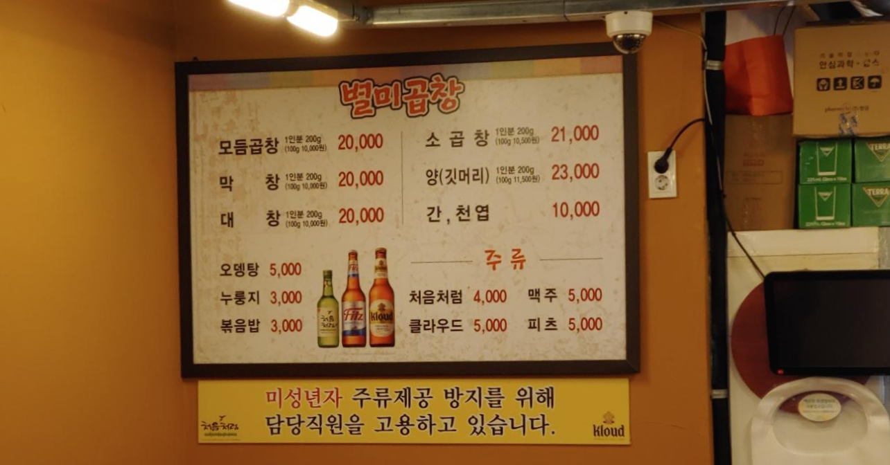 저녁 손님이 대부분이지만 오픈은 점심때쯤 일찍 하는 편인걸 알기에, 우리는 날씨가 좋아 낮술 한잔 즐기기 위해 오후에 방문했다. 홀에는 손님이 많지 않아 조용하고 편하게 곱창을 즐길 수 있었다.