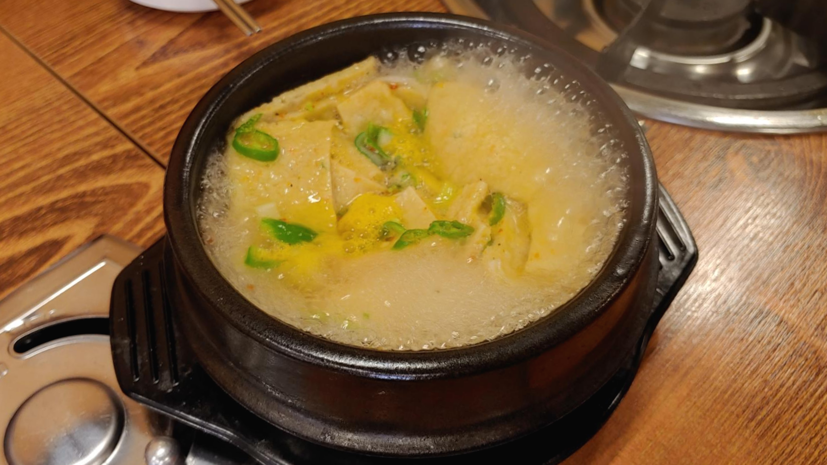 역시나 청양고추가 살짝 들어가 있는 뚝배기에 담겨 나온 오뎅탕은 단품으로도 5,000원씩에 판매가 되고 있어서 그런지 부족하지 않은 맛이다.