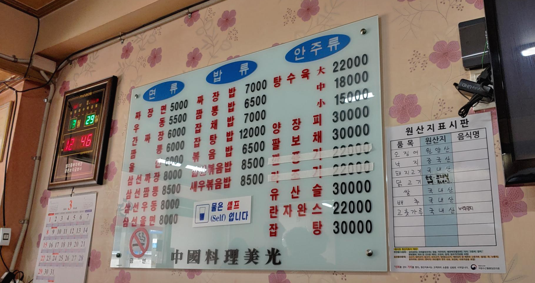 메뉴판을 보니 가격이 매우 흡족스럽다. 요즘엔 삼선짬뽕이 만원은 훌쩍 넘는데 여긴 대부분 만원미만의 착한 가격대를 이루고 있다.