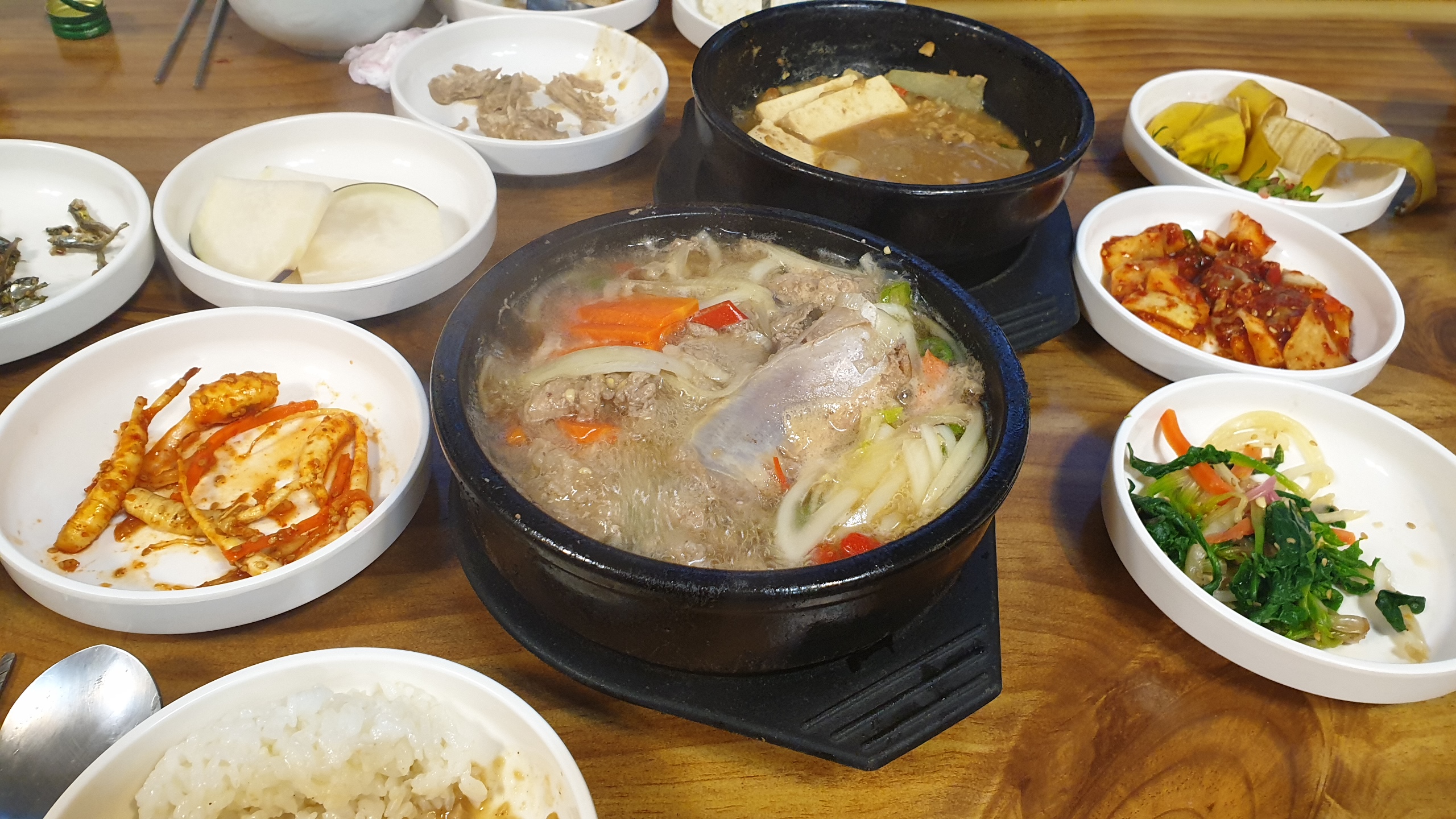 굴전도 맛있어 보이고 낙지볶음도 좋아 보이는데 유독 눈길을 끄는 청국장. 왠지 간만에 제대로 된 청국장을 먹어볼 것 같은 기대감에 얼른 청국장과 돼지갈비, 각각 하나씩 주문을 하고 드디어 반찬 시식 타임.