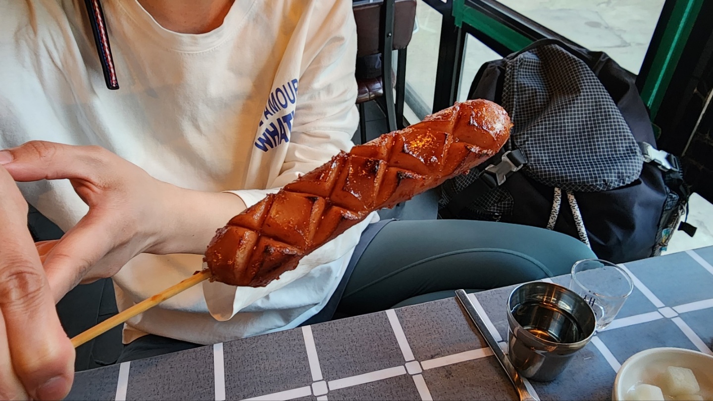 칼집이 멋드러지게 들어가 있고 노릇노릇한 소시지는 보기만 해도 흡족한데 한입 크게 베어 물어보니 와, 감동이 밀려온다. 껍질은 바삭한데 안은 촉촉하고 부드럽고 육즙마저 느껴지는 기분이다.
