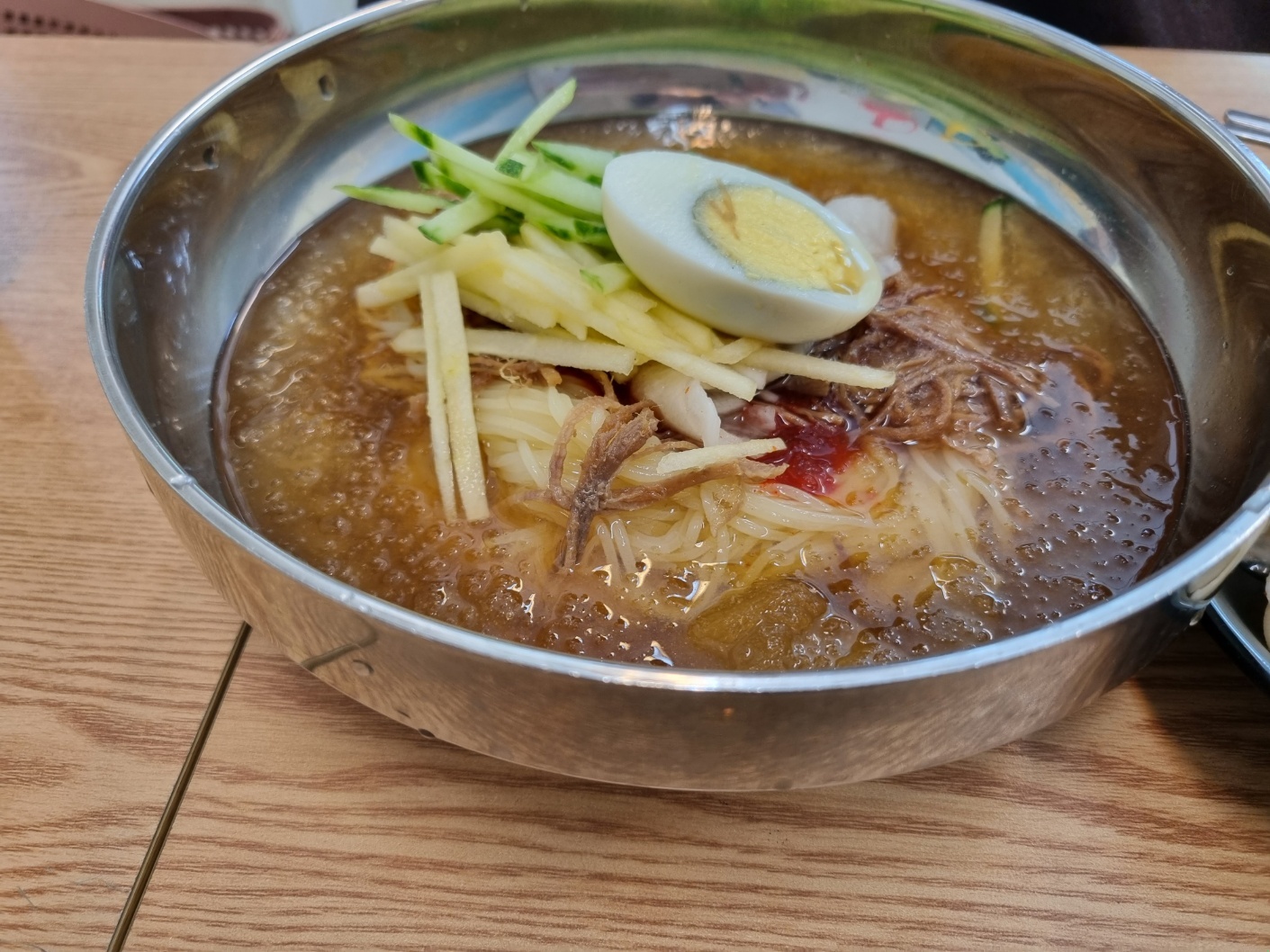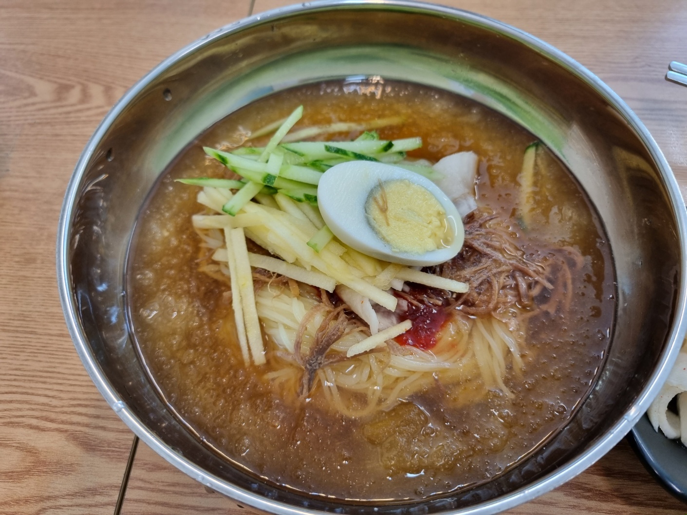 곧 나온 밀면은, 비빔보다는 물이 더 맛있다. 온육수를 보고 물밀면에 대한 기대치가 낮아졌는데, 물밀면에 들어간 육수는 배합을 따로 하는지, 좀 더 원조의 맛에 가까워 좋다.
