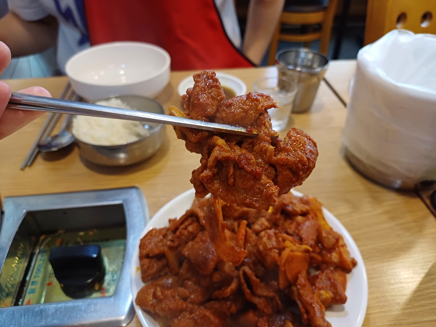 기름기나 국물이 거의 없어 마치, 연탄불고기 같은 식감과 맛이라 쌈으로 먹으면 이백배는 더 맛있어질 듯한데 쌈채소가 없어 조금 아쉽다.