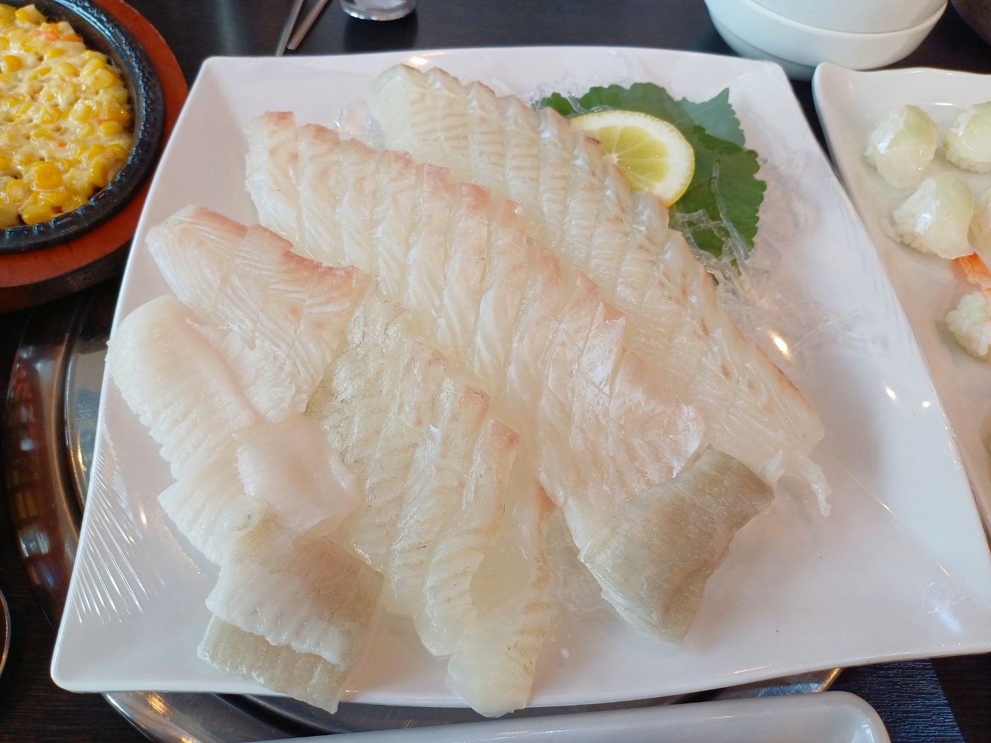 광어도 무척 싱싱한데다 너무 두껍지도 얇지도 않아 씹는 맛이 좋다.