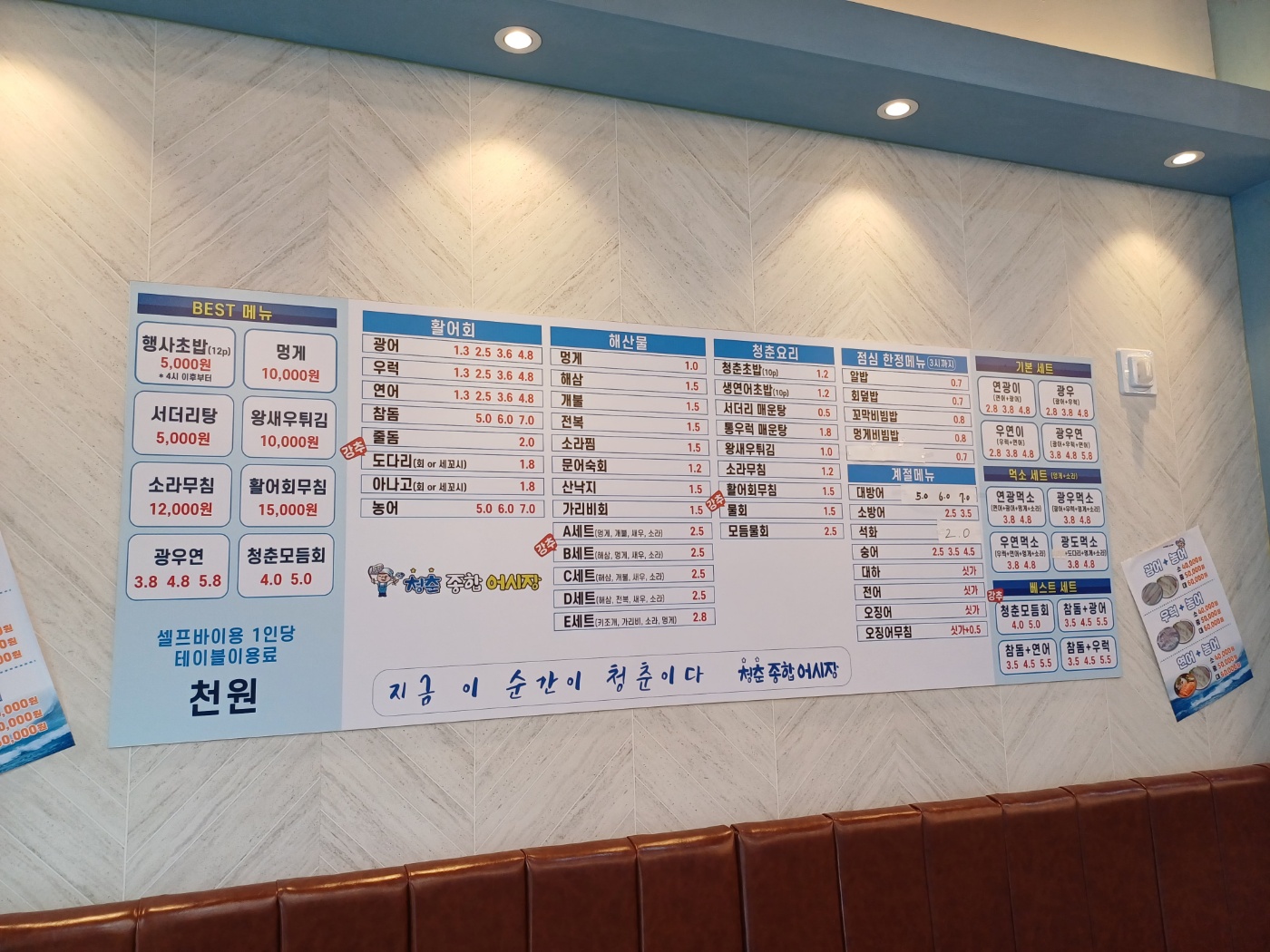 그러다 청춘 종합 어시장이 보였다. 최근 들어 많이 생긴 프랜차이즈 횟집인데, 해산물과 별로 안 친한 나는 가 볼 기회가 없었다.