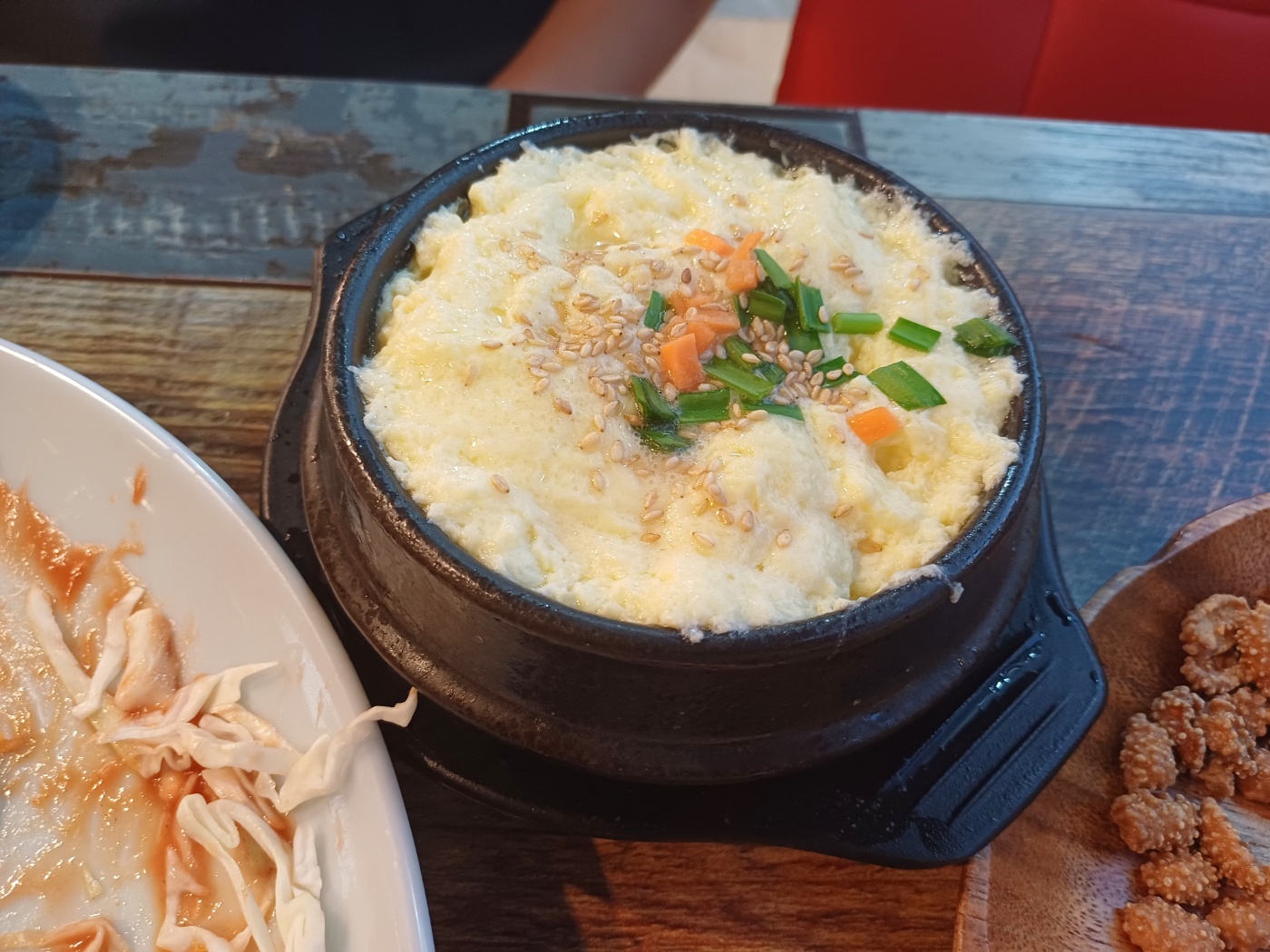 서비스라고 적게 주는 게 아니라 3천 원에 판매하는 메뉴와 동일한 양과 맛이다. 국물을 여유있게 잡아 부드럽고 촉촉한, 내가 제일 좋아하는 스타일의 계란찜이다.