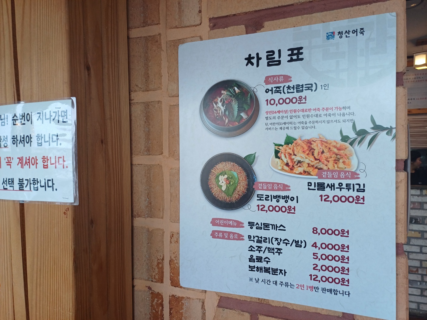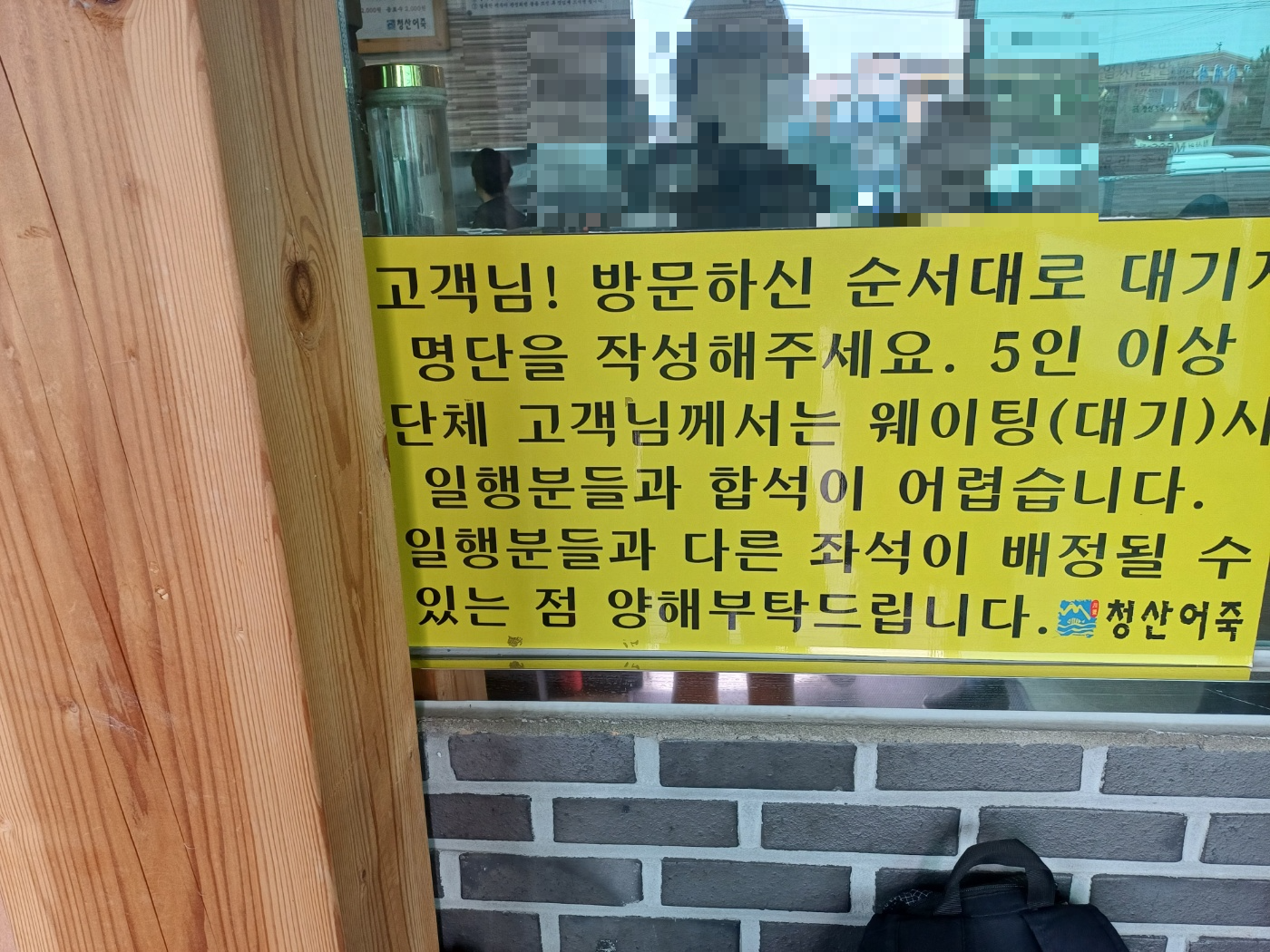방송에도 많이 나오고 유명인들의 단골집으로도 유명한 청산어죽.주말 웨이팅은 더 극악이기에 아울렛도 들리고 어죽도 먹을 겸 평일에 방문을 했다.