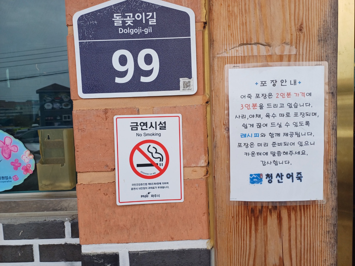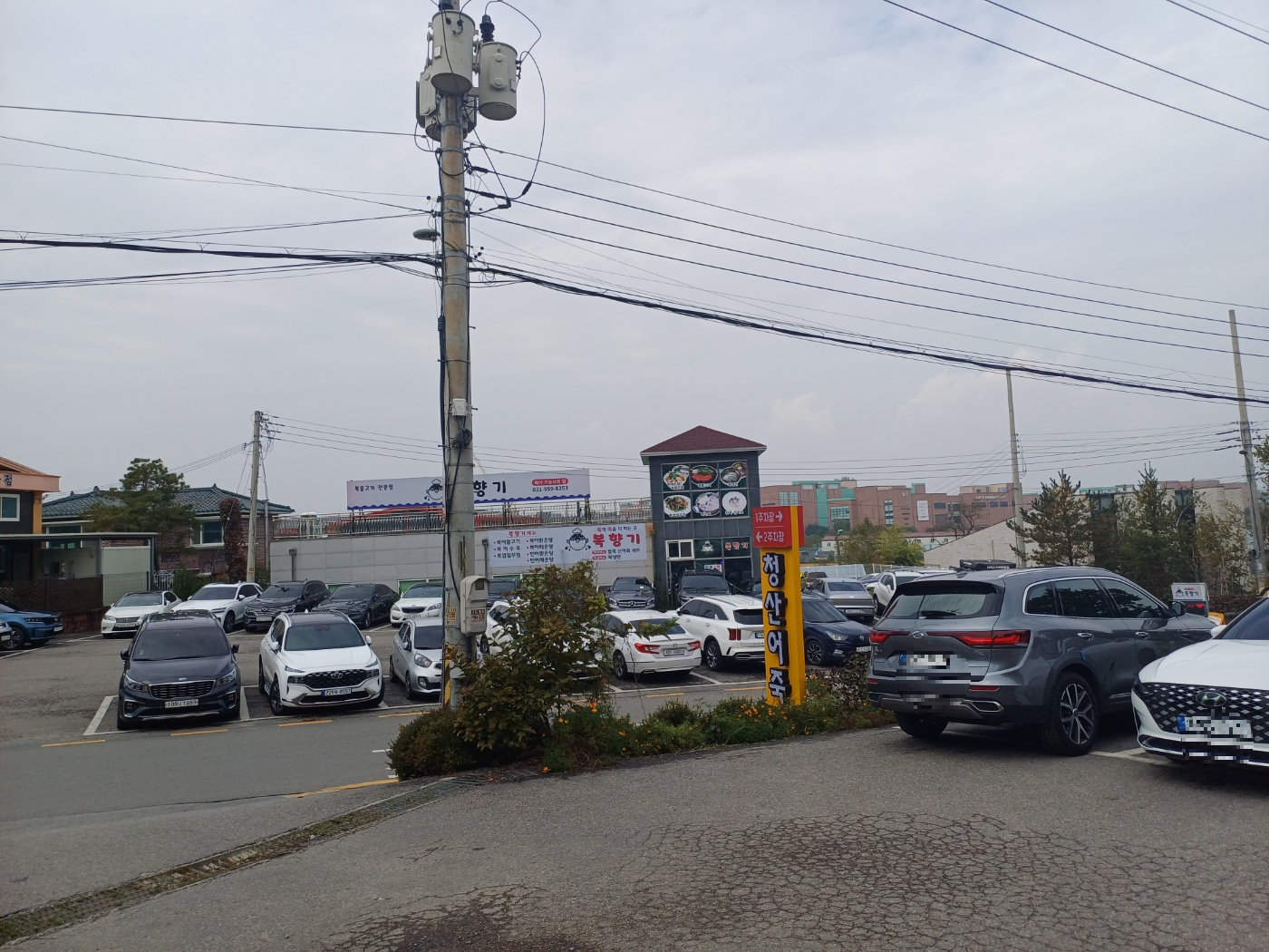 차가 없으면 오기 어려운 위치인지라, 가게의 인기는 전용 주차장의 크기를 보면 아는데 근처에서 가장 큰 주차장을 가지고 있는 식당이 청산어죽이다.