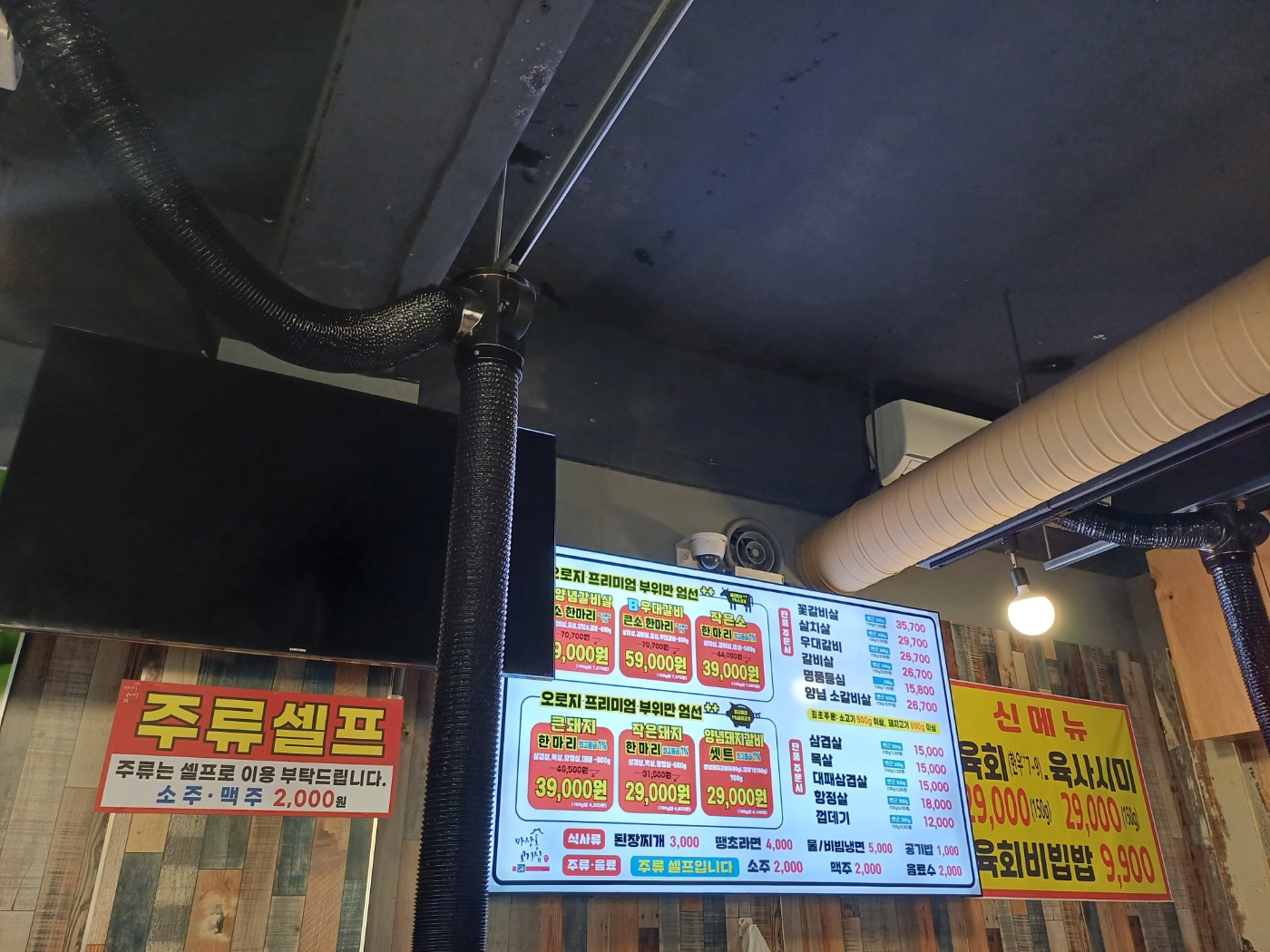 소주는 물론 맥주까지 2천원에 판매를 하고 돼지고기 모듬 한근이 29,000원, 소고기는 한 근에 6만 원도 하지 않으니 가성비로는 정말 최고인 셈이다.