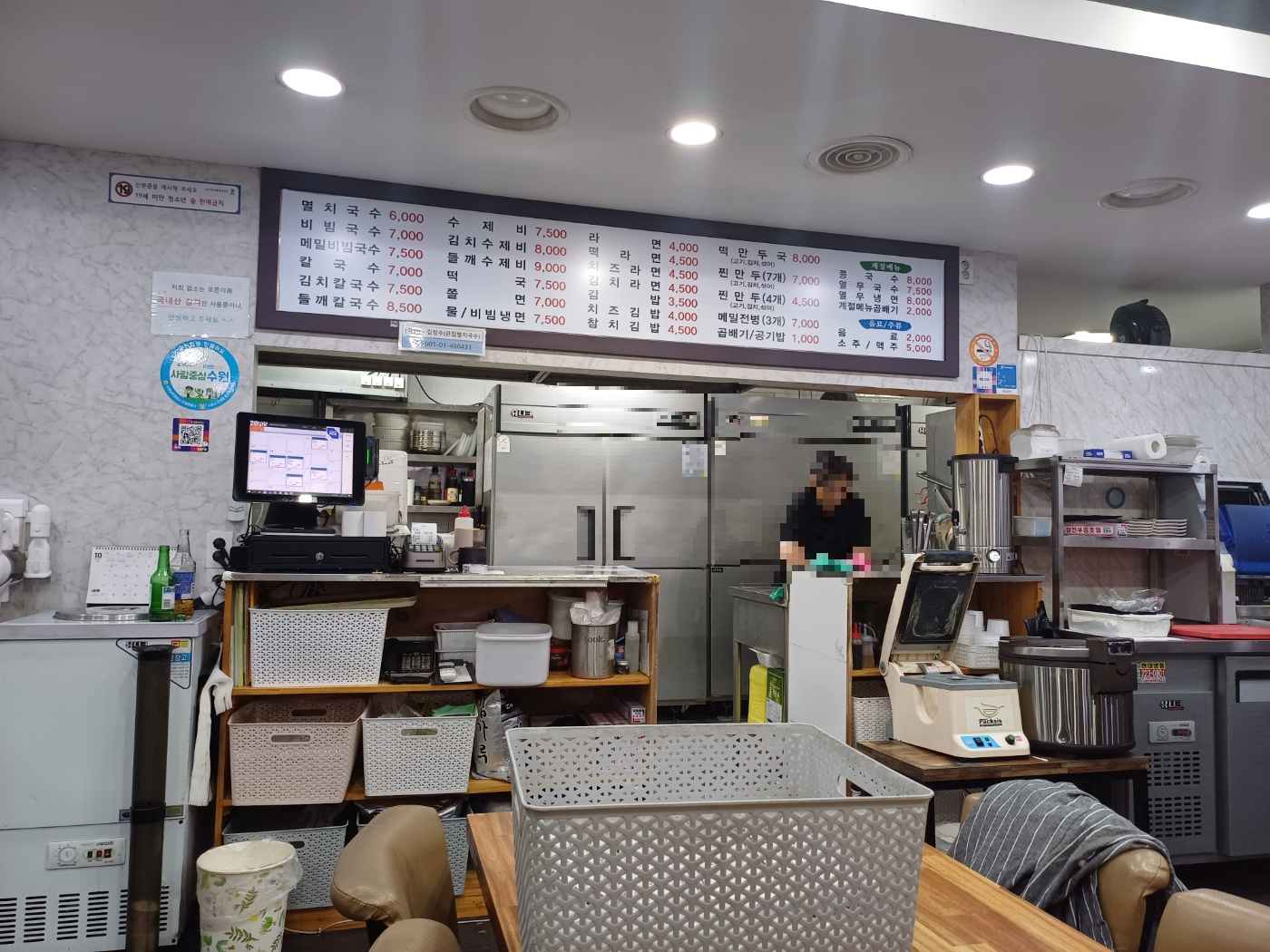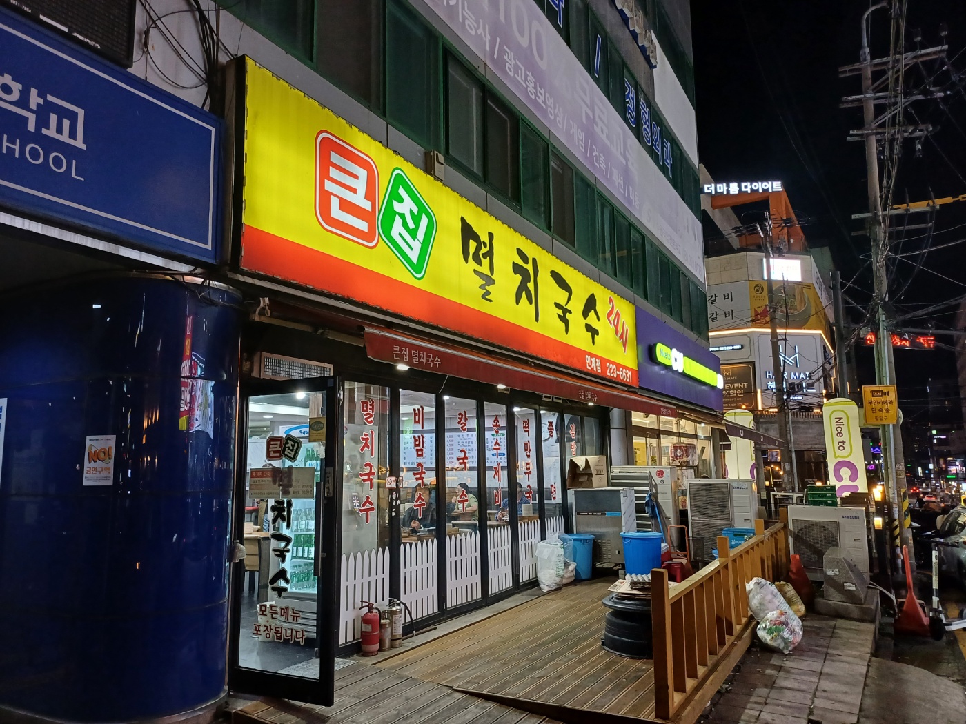 가게 규모도 큰 편이고, 무엇보다 24시간 운영을 한다. 쌀쌀한 밤 날씨에 몸이 움츠려지던 찰나였는데 뜨끈한 멸치국수는 야식이 아니라 약이라며 합리화를 시작한다.