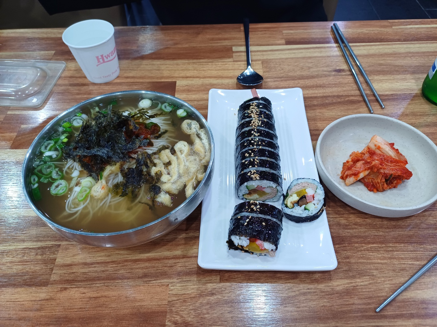 국수는 당연히 먹어야겠고, 오늘 하루종일 쌀은 한톨도 안 먹었다는 핑계로 참치김밥도 한 줄 추가해 본다.