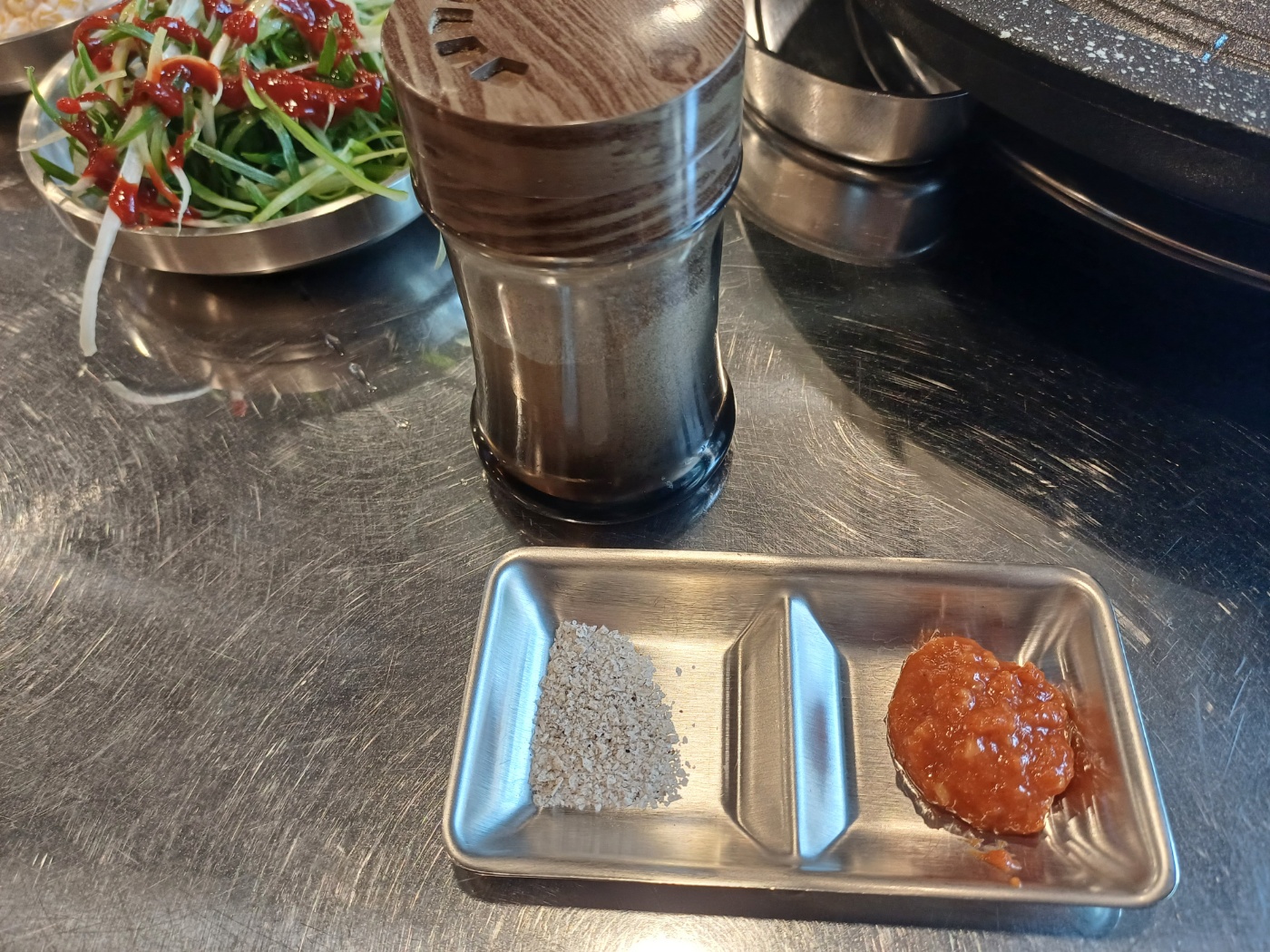 미나리를 제외하고는 셀프바에서 추가로 먹을 수 있어 좋다.