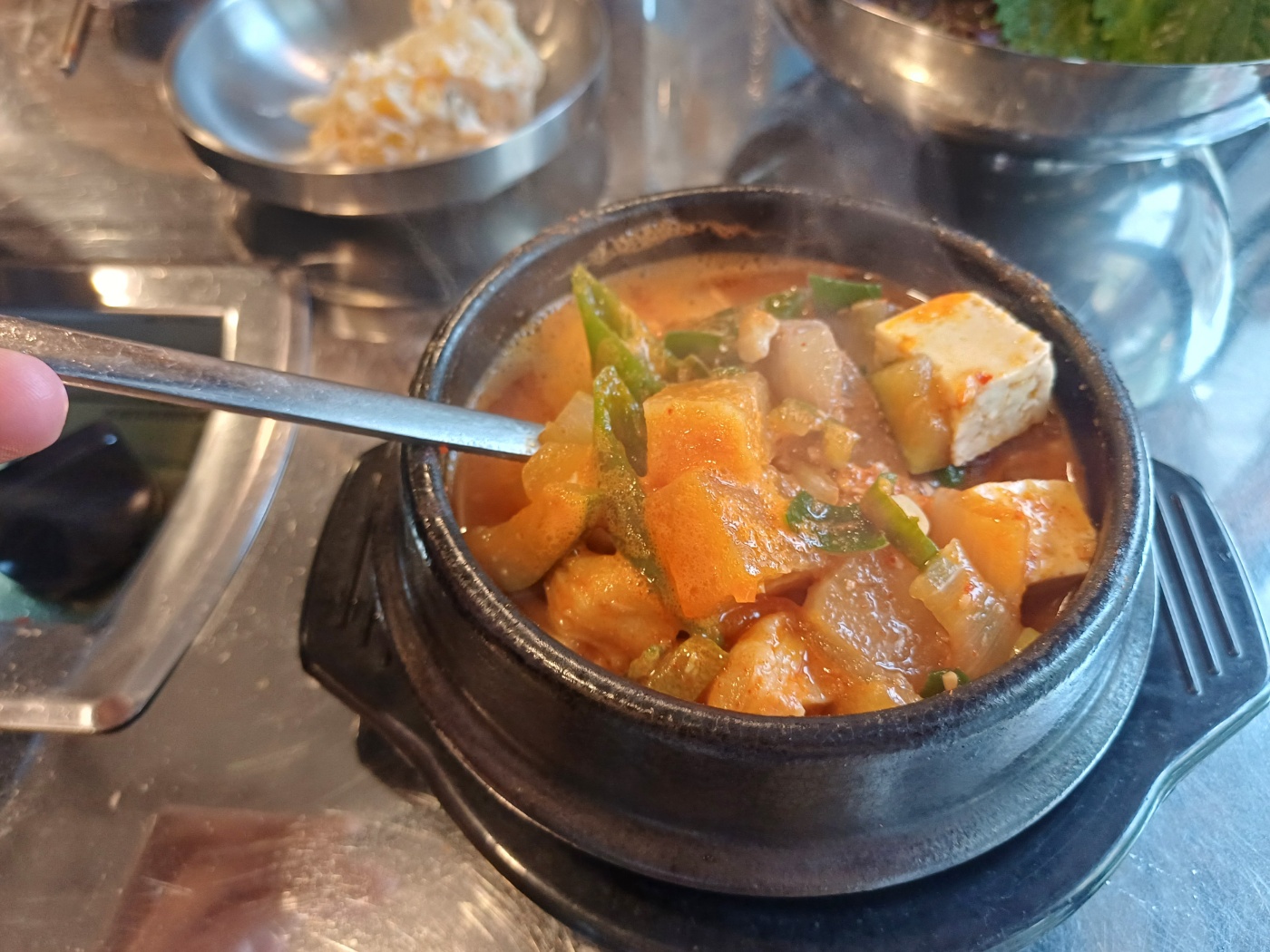 청국장+집된장 맛이 나는 국물에 건더기도 풍성해 서비스용이 아닌, 판매용으로 만들어 줘서 무척 맛이 좋다. 유상으로 시켜 먹을 의향이 있을 정도의 가치가 있다.